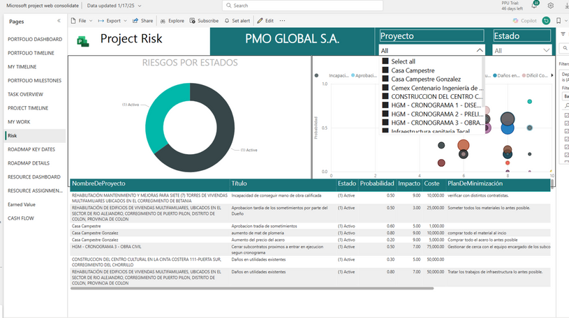 Centralización de información: Conecta datos de múltiples fuentes (Excel, MS Project, ERP, CRM) en un solo panel.